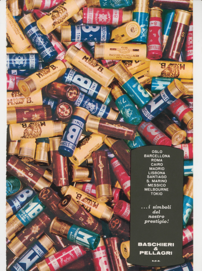 Negli anni ’50 e ’60,l’illustrazione viene abbandonata a favore della fotografia, con esiti modernissimi: c’è la costruzione di un’estetica del prodotto slegata dal contesto, con cascate di cartucce di vari colori, e l’uso di effetti ottici e della serialità tipici della ricerca artistica più avanzata di quegli anni.