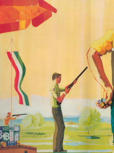 Un altro manifesto, quello con il cacciatore triste a fianco di quello sorridente, è stato copiato senza andare per il sottile dalla pubblicità di una rivista americana, con un ottimo gradimento presso il pubblico nostrano.