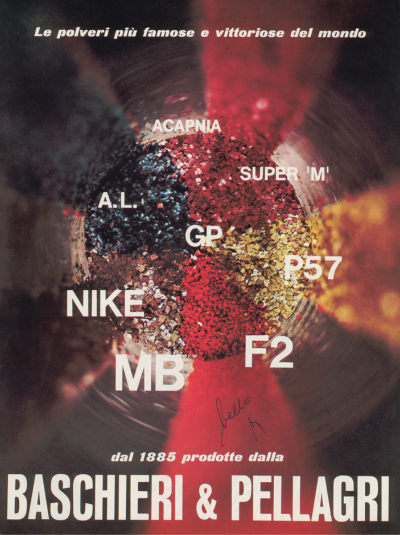 In the ’50s and ’60s the illustration was abandoned in favour of photography, with very modern results: we have the construction of the aesthetics of the product which are no longer linked to its context, with cascades of multi-coloured cartridges, the use of optical effects and serial images which was so typical of the most advanced artistic exploration at that time.