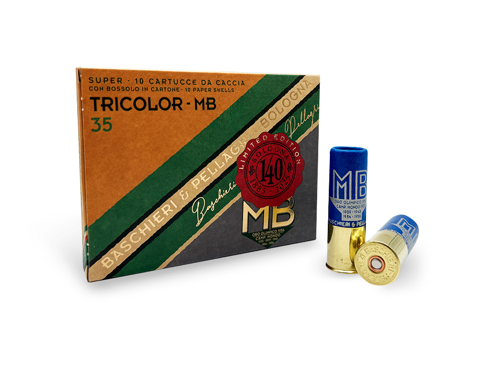 Riedizione della storica Mb Tricolor. Per celebrare i 140 anni di Baschieri & Pellagri, rinasce una cartuccia unica in tre colori e numerazioni distintive con l’inconfondibile bossolo in cartone.